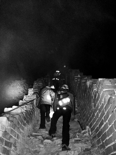 昨晚8點半左右,接到救援電話后,綠舟應急救援隊派出了3名最富經(jīng)驗的老隊員趕往箭扣長城。這些隊員對地形相對熟悉,并且都在箭扣地區(qū)參與過十幾次的營救行動?杉幢闶沁@樣,因為天氣原因,救援人員在搜尋的過程中依然困難重重。