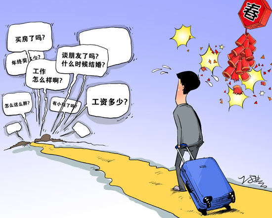 “可能長輩們也并非有意要‘逼’什么,更多時候,只是大家坐在一起沒話聊,只好問問結(jié)婚、談戀愛這些‘通用話題’!眮碜员本┑墓珓(wù)員蔡振鐸(化名)說。