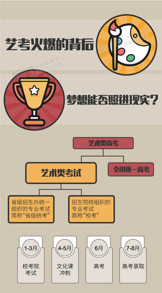 春節(jié)剛過,各藝術(shù)院校的藝術(shù)類考試已經(jīng)陸續(xù)拉開帷幕。和往年一樣,“藝考”這個詞匯再度成為社會關(guān)注的最大熱點之一。今年藝考依舊“熱度不減”,競爭似乎比往年更激烈。據(jù)記者了解,今年全國共有約6.5萬人次報考中國美術(shù)學(xué)院,比去年增加了近萬人,北京電影學(xué)院總報考38144人次,更創(chuàng)歷史新高。