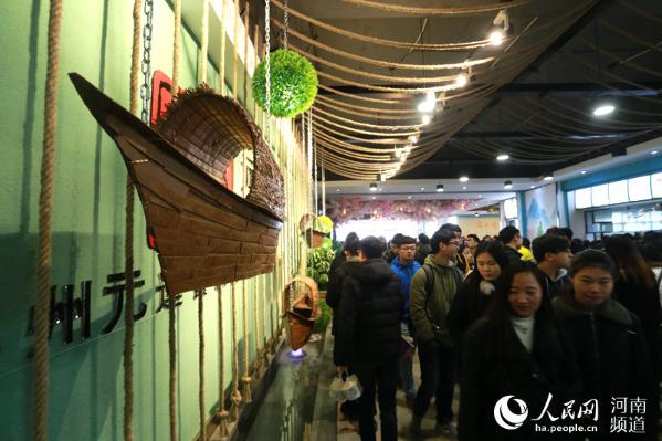 2月26日,在河南鄭州華北水利水電大學(xué),記者看到,學(xué)生們排隊在裝扮一新的學(xué)校食堂里就餐。曾經(jīng)的硬座桌凳換成了軟座桌椅,屋頂以星空為主題背景,獨特的燈飾造型,十二星座圖案,山水、動物、人物繪畫,池塘里游來游去的金魚、蓮藕將環(huán)境布置的十分溫馨、雅致,炫美。