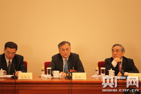 錢穎一回答記者提問(央廣網(wǎng)記者趙龍/攝)