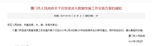 日前,廈門市政府發(fā)布了《廈門市促進(jìn)大數(shù)據(jù)發(fā)展工作實(shí)施方案》,廈門市將以政府大數(shù)據(jù)開放開發(fā)為先導(dǎo),推動(dòng)大數(shù)據(jù)技術(shù)與社會(huì)經(jīng)濟(jì)各領(lǐng)域應(yīng)用的深度融合;以企業(yè)為主體,突破大數(shù)據(jù)關(guān)鍵技術(shù)研發(fā),著力推進(jìn)數(shù)據(jù)匯集和發(fā)掘,深化大數(shù)據(jù)在各行業(yè)創(chuàng)新應(yīng)用,重點(diǎn)錘煉若干優(yōu)勢(shì)產(chǎn)業(yè)環(huán)節(jié),全面提升廈門市大數(shù)據(jù)產(chǎn)業(yè)發(fā)展水平。