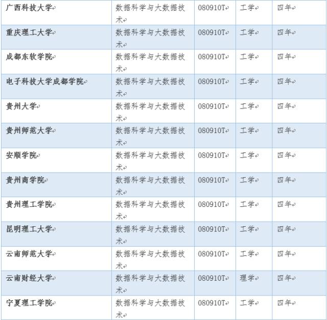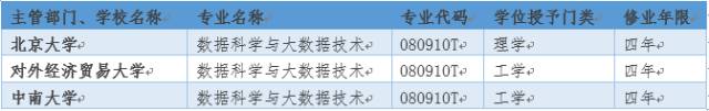 從兩次獲批的”數(shù)據(jù)科學(xué)與大數(shù)據(jù)技術(shù)專業(yè)”名單中可以看出,該專業(yè)學(xué)制都為四年,授予工學(xué)學(xué)位或理學(xué)學(xué)位。
