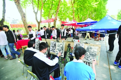 昨日在市十一中的中招咨詢會上,有的學(xué)校安排學(xué)生現(xiàn)場作畫展示教學(xué)水平 記者彭年 攝