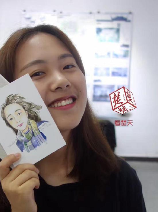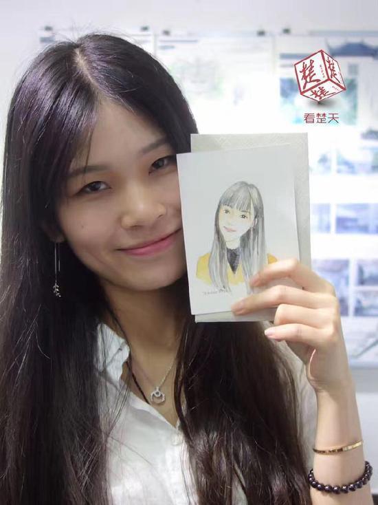 大大的眼睛、長長的頭發(fā),微微歪著腦袋,一個活潑可愛的女孩形象躍然紙上,該班張馨云同學(xué)直呼:“和我真的太像了!”而這別出心裁的畢業(yè)禮全都出自該班授課教師范晶晶之手。
