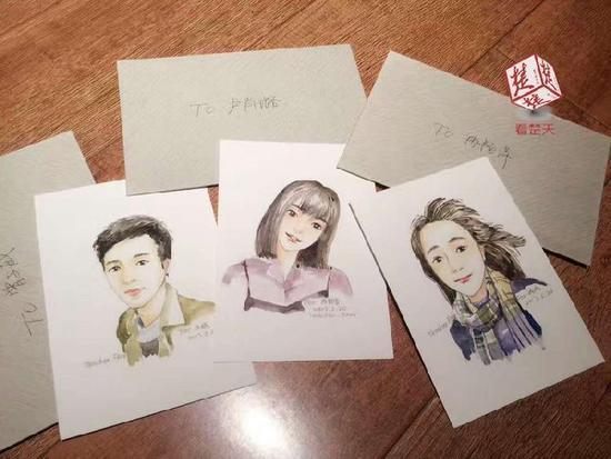 近日,該班學(xué)生順利結(jié)束畢業(yè)答辯,范晶晶給班上每位同學(xué)送出了由自己親手繪制的水彩明信片,明信片正面是她為每個學(xué)生手繪的人物肖像,反面則是她親手寫上的昵稱和對學(xué)生的祝福。