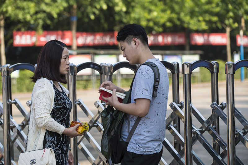 山西平陸一中校門口一名母親在叮囑孩子。劉文禮 攝 人民網(wǎng)太原6月7日電 (李夢文、喬慧)6月7日,2017年高考拉開帷幕,全國高考報名考生共940萬人。其中,山西共有317208名學(xué)子參加高考,全省共設(shè)考點300個。面對人生第一次“大考”,學(xué)生們有的從容淡定,有的略顯緊張,家長老師們在考場外滿懷信心為孩子加油鼓勁,讓我們通過照片感受下現(xiàn)場氛圍。 -
