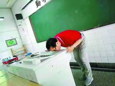 這是一張會被永遠定格的照片:一個穿著紅色上衣的初中老師,在上完最后一節(jié)課后,低下自己的頭,深情地親吻相伴自己40年的講臺。浙江富陽郁達夫中學八(2)班的47位學生,很遺憾沒有看到這一幕,他們去吃中飯了。而一位體育老師恰巧路過,拍下了這張珍貴的照片。