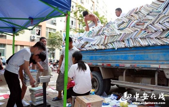 “像我這幾百元買的考研資料以及我的考研筆記,當(dāng)廢品賣掉讓人心疼,如果知道誰需要,我更愿意無償轉(zhuǎn)讓!眳⒓犹槭袌鰯[攤的一位大四畢業(yè)生說,一想到下屆學(xué)弟學(xué)妹們開學(xué)還要購置同樣的新書,真覺得浪費(fèi)。