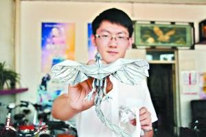 今年高考,山東省實驗中學(xué)2014級26班的畢業(yè)生孫洪濤十分輕松地被哈爾濱工業(yè)大學(xué)(威海校區(qū))錄取了,原因不是孫洪濤的高考分?jǐn)?shù)特別高,而是因為在此前的自主招生考試過程中,孫洪濤的特長——折紙藝術(shù)被學(xué)?粗校@得了60分的加分。孫洪濤也被網(wǎng)友們稱為“折紙哥”。