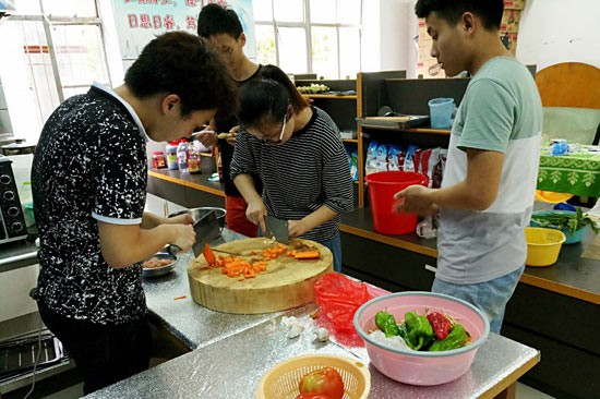 同學(xué)們在共享廚房做飯。湖北大學(xué) 楊海北供圖