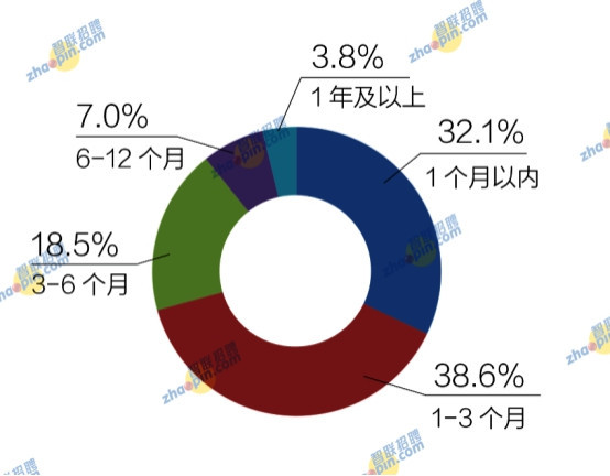 在獲得國內(nèi)第一份工作耗時方面,花費1-3個月的占比最高,為38.6%,花費1個月以內(nèi)的占32.1%,相較2015年的40.3%有所下降。此外,花費3-6個月的占18.5%,花費6-12個月的占7%,花費1年及以上的占3.8%。