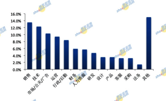 海歸就業(yè)的工作崗位類型分布中,排名前五分別是銷售、技術(shù)、市場/公關(guān)/廣告、運營、行政/后勤,占比依次為13.5%、12.3%、10.3%、9.4%、8.4%。其次是財務(wù)、人力資源和研發(fā),占比分別為5.9%、5.7%和4.7%。設(shè)計、產(chǎn)品等崗位占比均低于4%。