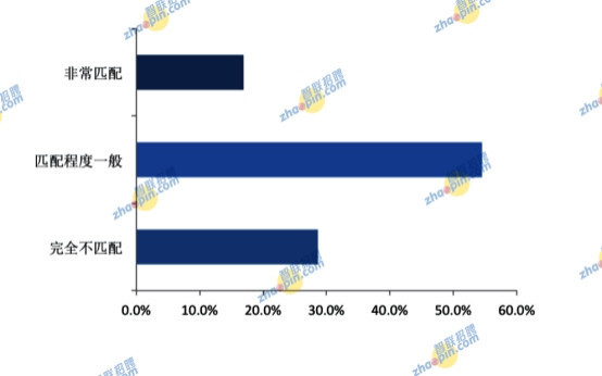 進(jìn)一步調(diào)查發(fā)現(xiàn),海歸群體對當(dāng)前工作崗位與其海外所學(xué)專業(yè)的匹配度偏低,認(rèn)為非常匹配的僅為16.9%,認(rèn)為匹配程度一般的為54.5%,認(rèn)為完全不匹配的占28.6%。根據(jù)智聯(lián)招聘此前發(fā)布的《2017年大學(xué)生求職指南》數(shù)據(jù)來看,有38.5%的國內(nèi)大學(xué)生存在與專業(yè)不對口的情況?磥恚徽撌菄鴥(nèi)的大學(xué)生,還是海歸群體,均存在專業(yè)不對口的情況。