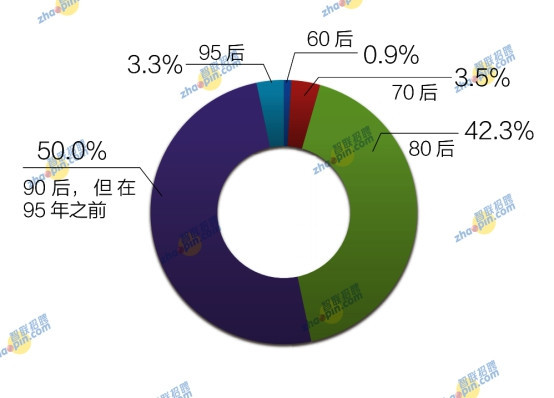 年齡方面,以80后和90后海歸為主,其中,80后海歸占比42.3%,90后海歸占比為53.3%,經(jīng)過細(xì)分發(fā)現(xiàn),90-95年之間的海歸占比為50.0%,95后僅占3.3%。70后、60后海歸占比較少,分別為3.5%、0.9%。