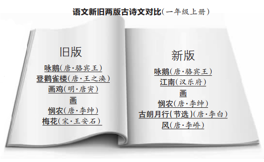 新語文教材最明顯的變化是增加了傳統(tǒng)文化篇目。小學一年級開始有古詩文,整個小學12冊教材共選古詩文124篇,占所有選篇的30%,比原有人教版增加55篇,增幅達80%。