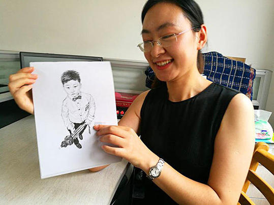 4年前,出于對(duì)兩個(gè)女兒的喜愛,陳克拉開始嘗試著用水筆畫人物素描。雖然當(dāng)時(shí)畫得很一般,可孩子們看了仍喜歡得不得了。而真正讓陳克拉將畫畫當(dāng)成一樁“正經(jīng)事”是在去年秋天,那時(shí)她剛接手這批一年級(jí)的新生,適逢學(xué)校實(shí)施“心愿卡”獎(jiǎng)勵(lì)辦法:只要孩子努力去實(shí)現(xiàn)自己的生活和學(xué)習(xí)計(jì)劃,在各方面有進(jìn)步,都能獲得心愿卡。