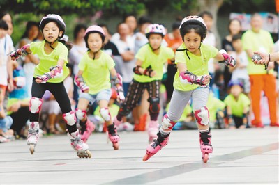 近日,在安徽省淮北市濉溪縣,少兒輪滑愛好者參加速度輪滑追逐賽。當日,安徽省淮北市濉溪縣第八屆速度輪滑追逐賽舉行,吸引不少小學生參賽。