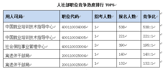 國考報名第八天,距報名結束只有兩天了,根據(jù)歷年國考十天的報名情況得出國考報名第八天是集中填報的高峰期,之后會出現(xiàn)下降趨勢。人社部競爭最激烈的職位依然是中國就業(yè)培訓技術指導中心質(zhì)量督導辦公室主任科員及以下職位,職位代碼400110034006,這一職位勢必會一直占據(jù)人社部最熱職位榜首。我們在報名時要避熱就冷,下面我們來看一下,人社部最冷的職位有哪些?