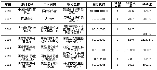 最后從最熱職位競爭比來看,目前依然是中國計劃生育協(xié)會國際合作部聯(lián)絡(luò)處主任科員及以下(職位代碼100310004003)一職競爭比最高,為2666:1,相對于近7年其他職位的數(shù)據(jù)而言,柔和了很多,已經(jīng)不再是萬里挑一的局面了。