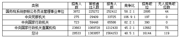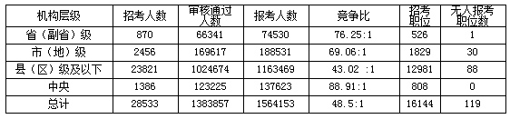 中央黨群百里挑一,中央國家行政機關(guān)直屬機構(gòu)低于平均競爭比