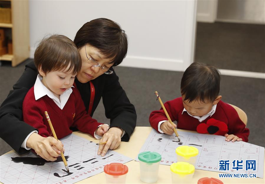 11月7日,在英國倫敦韋德小學(xué),學(xué)生在中文教室學(xué)寫毛筆字。半天英文、半天中文授課,中文教室里老師不許說英語,部分教材源自中國……位于英國倫敦市區(qū)的韋德小學(xué)今年9月剛開學(xué),就以“浸入式”漢語教學(xué)特色引起英國媒體和家長(zhǎng)廣泛關(guān)注。新華社記者韓巖攝