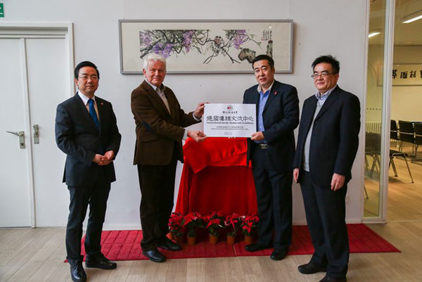 前德國國會議員、德國尤利希德意志科研中心主任、德中藝術設計交流協(xié)會高級顧問阿道夫?里茲,杜塞爾多夫原大區(qū)主席約爾根?比索,德國資深媒體專家約阿希姆?烏姆巴赫,德國知名設計、攝影和藝術策展人考琳娜?蓋爾茨等當?shù)卣、文化名人出席了掛牌儀式。