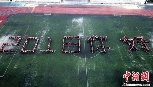 圖為千余名大學(xué)生拼出“2018你好”字樣迎新年。司新利 攝