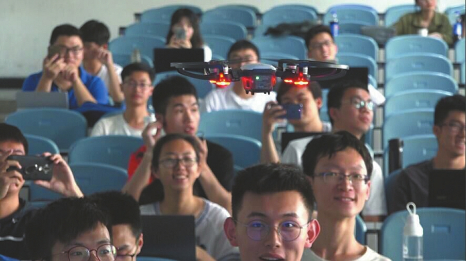 魏驍勇研發(fā)的人臉識別無人機出現(xiàn)在川大課堂。
