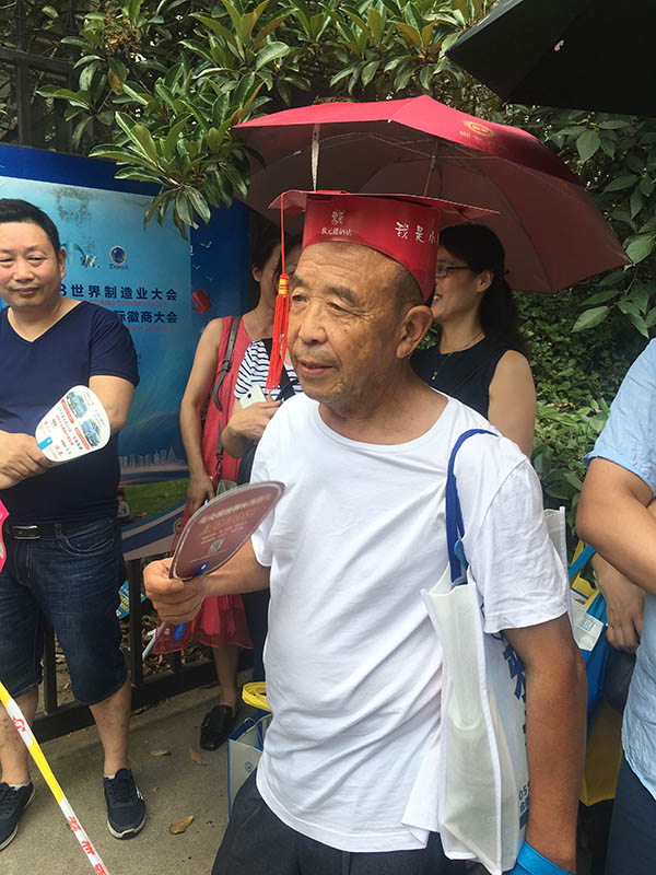 73歲的羅大爺也是送考大軍中的一員,天氣較熱,他瞞著家人來(lái)到考場(chǎng)門(mén)外,等待正在考試的外孫女!皼](méi)讓他來(lái),自己不放心非要過(guò)來(lái),坐了一個(gè)多小時(shí)公交車(chē)。”羅大爺?shù)呐畠赫f(shuō)。