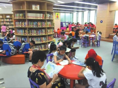 暑期過(guò)半,圖書(shū)館無(wú)疑成了孩子們的新天地。近日,天府早報(bào)記者來(lái)到位于天府廣場(chǎng)旁的省圖書(shū)館,只見(jiàn)大廳里來(lái)往著不少背著書(shū)包的學(xué)生讀者,孩子們有的是為了讀本好書(shū),有的則把這里作為自習(xí)備考的好去處。2017年春節(jié)后,省圖的青少年閱覽室正式啟用,6至14歲的小讀者有了“專(zhuān)屬”閱讀區(qū)。“今年暑期,這里平均每天會(huì)接待1000多位小讀者,”閱覽室工作人員李文娟透露,“我們鼓勵(lì)小朋友鍛煉自己的讀書(shū)能力和技能,培養(yǎng)他們運(yùn)用圖書(shū)館的能力。”