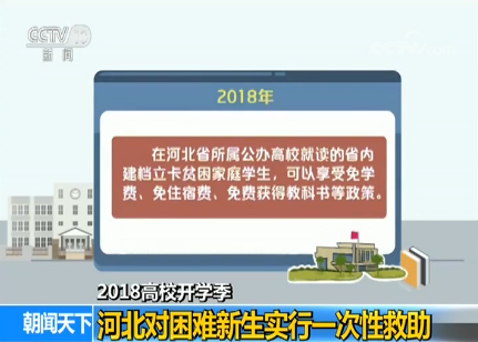 今年,在河北省內(nèi)就讀的河北省建檔立卡貧困家庭學(xué)生,可以享受免學(xué)費(fèi)、免住宿費(fèi)、免費(fèi)獲得教科書等政策。從2018年秋季學(xué)期開始,河北省還對(duì)參加高考并被全日制普通高等院校錄取、具有河北省戶籍的家庭經(jīng)濟(jì)特別困難學(xué)生實(shí)行一次性救助。一次性救助標(biāo)準(zhǔn)是每生2000-3000元,主要解決大學(xué)新生報(bào)到的路費(fèi)、學(xué)校助學(xué)金發(fā)放前的生活費(fèi)等。