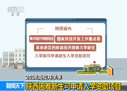 陜西省內(nèi)集中連片特困地區(qū)、國(guó)家扶貧開發(fā)工作重點(diǎn)縣、革命老區(qū)的家庭經(jīng)濟(jì)困難大學(xué)新生,入學(xué)前可申請(qǐng)新生入學(xué)資助項(xiàng)目。就讀本省院校的每人500元,就讀省外院校的每人1000元。同時(shí),在陜西省地方高校就讀的建檔立卡家庭的大學(xué)本專科學(xué)生,每人每年還可領(lǐng)取6000元的助學(xué)金生活補(bǔ)助。