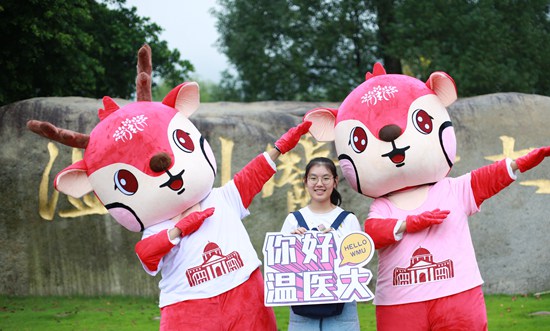 溫州醫(yī)科大學學生扮演吉祥物歡迎新生。溫州醫(yī)科大學 倪劭楷/攝
