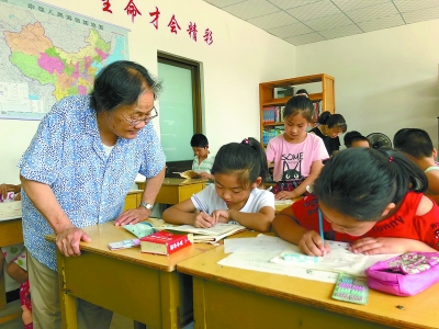 嚴敏文正在為孩子們講解習題。朱松梅攝