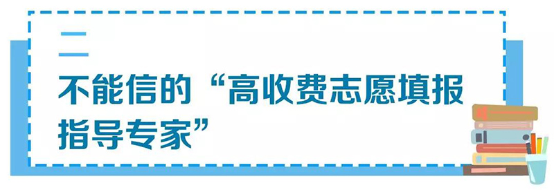 這些高收費(fèi)志愿填報(bào)專(zhuān)家指導(dǎo)完全是一種不規(guī)范的市場(chǎng)行為,其中不乏詐騙。據(jù)調(diào)查,沒(méi)有一所高校與商業(yè)公司開(kāi)展高考志愿填報(bào)指導(dǎo)的合作,商家打出的“合作”無(wú)非是騙人的噱頭。很多公司包裝出來(lái)的所謂“專(zhuān)家”只是一種營(yíng)銷(xiāo)手段,其實(shí)并不熟悉高校、不了解專(zhuān)業(yè)、更不清楚志愿填報(bào)的辦法,近年來(lái)更是吹噓所謂的“大數(shù)據(jù)”。