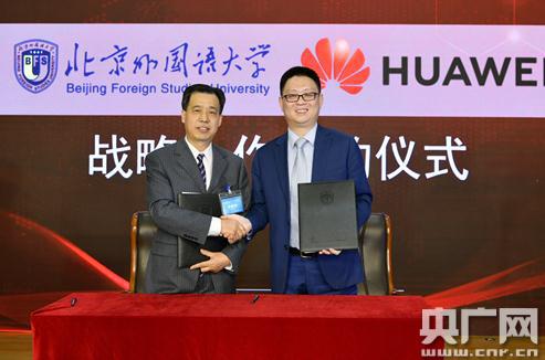 成立大會上,北京外國語大學(xué)與華為技術(shù)有限公司、科大訊飛股份有限公司舉行戰(zhàn)略合作伙伴協(xié)議簽約儀式。孫有中分別與華為技術(shù)有限公司北京代表處總經(jīng)理劉陽,科大訊飛股份有限公司執(zhí)行總裁吳曉如簽署合作協(xié)議。