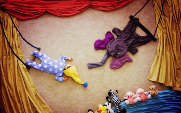據英國《每日郵報》報道,臺灣藝術家廖奎妮(Queenie Liao)憑借其豐富的想象力,用不同顏色的材料、毛絨玩具和其他家居用品當背景,在兒子Wengenn熟睡時,拍攝了一系列虛構通話場景的照片,這些照片已經被集結成書在臺灣出版。