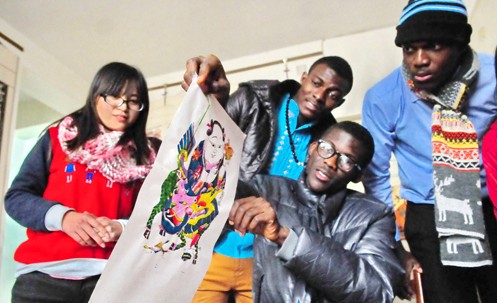 12月15日,來自加納的留學(xué)生在學(xué)習(xí)木版年畫制作。聊城東昌府木板年畫在2008年入選第二批國家級非物質(zhì)文化遺產(chǎn)名錄,當(dāng)日,在山東聊城大學(xué)學(xué)習(xí)的6名外國留學(xué)生來到聊城市東昌府木版年畫社,向木版年畫藝人了解年畫的起源,學(xué)習(xí)制作工藝和技巧,感受中國傳統(tǒng)文化。張振祥 高麗君 攝