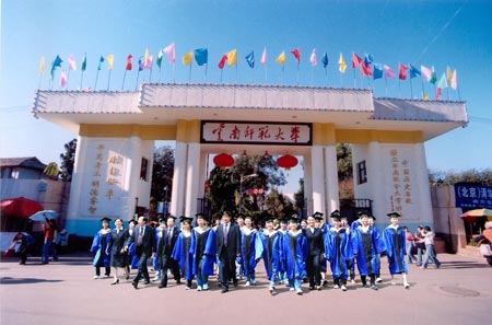 云南師范大學(xué)黨委書記伊繼東教授 記者:伊?xí),您好!首先?qǐng)您簡(jiǎn)要地介紹一下學(xué)校的歷史沿革和發(fā)展現(xiàn)狀。 伊?xí)洠涸颇蠋煼洞髮W(xué)的前身是國(guó)立西南聯(lián)合大學(xué)師范學(xué)院。1938年4月,抗日戰(zhàn)爭(zhēng)期間,北京大學(xué)、清華大學(xué)和南開大學(xué)在昆組建了國(guó)立西南聯(lián)合大學(xué),下設(shè)工學(xué)院、理學(xué)院、文學(xué)院、法商學(xué)院、師范學(xué)院。1946年抗戰(zhàn)勝利后,組成聯(lián)大的清華、北大、南開三校復(fù)員北返。為答謝八年來云南各族人民的支持與厚愛,西南聯(lián)大將師范學(xué)院留昆獨(dú)立設(shè)置,定名國(guó)立昆明師范學(xué)院;1950年改名為昆明師范學(xué)院;1984年更名為云南師范大學(xué)。