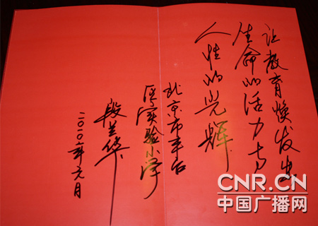 豐臺(tái)區(qū)實(shí)驗(yàn)小學(xué)校長(zhǎng) 段蘭華題詞 主持人:最后請(qǐng)您描繪一下未來(lái)幾年豐臺(tái)實(shí)驗(yàn)小學(xué)有什么樣的發(fā)展? 段校長(zhǎng):剛才提到了豐臺(tái)實(shí)驗(yàn)小學(xué)的新環(huán)境育人辦學(xué)特色,在未來(lái)的發(fā)展當(dāng)中,我們還要強(qiáng)化這個(gè)特色,讓這個(gè)特色更突顯,讓全體師生更受益,因此在2009年,我們進(jìn)一步深化這個(gè)發(fā)展主題,提出了陽(yáng)光教育的理念,陽(yáng)光教育的理念植根于新環(huán)境育人,它的基本前提是尊重教育,真正的尊重教師,尊重孩子,尊重他的人格,尊重他的差異。目前,教育存在著方方面面的問(wèn)題,雖然教育的發(fā)展形勢(shì)很好,但教育差異化現(xiàn)象比較嚴(yán)重,而陽(yáng)光的特點(diǎn)是把溫暖灑遍任何一個(gè)角落,是最公平的,因此我們把他賦予到教育工作當(dāng)中,隨之構(gòu)成了陽(yáng)光教育體系,陽(yáng)光教育構(gòu)架。 比如說(shuō)陽(yáng)光校園,我們的校園環(huán)境,今后就按照陽(yáng)光校園的方向繼續(xù)建設(shè)與優(yōu)化; 陽(yáng)光文化,我們談到的幾個(gè)要素,都是尊重人的發(fā)展,自然的并入陽(yáng)光教育的理念; 陽(yáng)光管理,比如學(xué)校的民主化管理如何,教育管理的一些管理策略,管理方法是不是從群眾中來(lái),到群眾中去,現(xiàn)在有科學(xué)學(xué)習(xí)發(fā)展觀,以人為本,全面協(xié)調(diào)可持續(xù)發(fā)展,那么這些都可以融入到管理當(dāng)中; 陽(yáng)光課堂就是以尊重為前提,孩子有方方面面的差異,再好的學(xué)校任何一個(gè)教學(xué)班,總有優(yōu)等生與差等生。能不能公平的面對(duì)每一個(gè)孩子,這就是我們陽(yáng)光課堂要研究的內(nèi)容。陽(yáng)光課堂首先用陽(yáng)光教育理念去引導(dǎo),另外要尊重孩子,充分調(diào)動(dòng)學(xué)生自主探究,獲得知識(shí),更重要的是獲得能力。學(xué)生固然要學(xué)習(xí)很多知識(shí),但是更重要的是教給學(xué)生獲得這些知識(shí)的能力,學(xué)生在老師的引導(dǎo)下,自主探究,所掌握的知識(shí)往往是牢固的,記憶是深刻的。讓學(xué)生感到是自己學(xué)會(huì)的,很有成就感,其實(shí)老師有精心的設(shè)計(jì),有精心的引導(dǎo)。陽(yáng)光體育是教育部提出來(lái)的一個(gè)概念,正好也列入我們這個(gè)體系, 像我們說(shuō)的輪滑、跳繩、乒乓球、橋牌、武術(shù),也包括智力運(yùn)動(dòng),這是陽(yáng)光體育活動(dòng),整個(gè)兒構(gòu)成了這樣一個(gè)體系。方方面面的教育行為、教育環(huán)境共同作用于學(xué)生,學(xué)生就可以在這份教育陽(yáng)光的沐浴下更加健康的成長(zhǎng)。 主持人:陽(yáng)光教育的確非常的明亮,也會(huì)照亮每個(gè)孩子每個(gè)家長(zhǎng)每個(gè)老師的心靈,再次感謝段校長(zhǎng)的到來(lái)。電腦旁的您如果還有什么樣的問(wèn)題想跟段校長(zhǎng)溝通交流,您可以在節(jié)目之后留言,段校長(zhǎng)都會(huì)給您一一作答,感謝您,我們下期節(jié)目再見(jiàn)。 段校長(zhǎng):謝謝主持人,謝謝廣大觀眾。 |