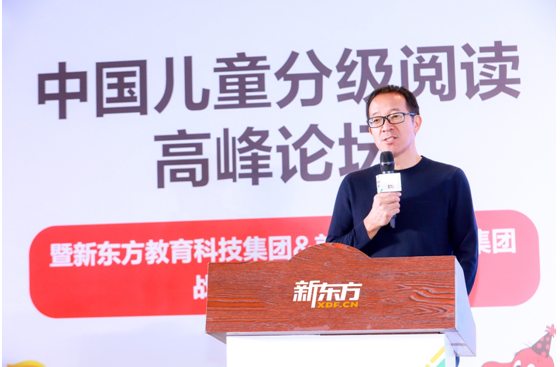 為此,新東方教育科技集團與Scholastic美國學(xué)樂出版集團于12月15日聯(lián)合主辦了“中國兒童分級閱讀高峰論壇暨新東方教育科技集團于美國學(xué)樂出版集團戰(zhàn)略合作發(fā)布會”;顒由希聳|方教育科技集團董事長俞敏洪,美國學(xué)樂出版集團亞洲總裁Frank Wong,國家英語課程標(biāo)準(zhǔn)專家、教育部首批國培專家魯子問,首都師范大學(xué)外語學(xué)院英語教育系副教授任真,美國學(xué)樂出版集團大中華區(qū)總經(jīng)理方澤坤,新東方教育科技集團國際合作部總經(jīng)理陳莊,新東方分級閱讀(新東方小書童)高級總監(jiān)傅詩淇,美國學(xué)樂出版集團中國培訓(xùn)與學(xué)習(xí)發(fā)展經(jīng)理任小池,Ivy Education幼兒園高級執(zhí)行總監(jiān)、哈佛大學(xué)多元智能教育認(rèn)證培訓(xùn)師Ryan Cardwell,新東方分級閱讀(新東方小書童)教研經(jīng)理、美國藍(lán)思官方認(rèn)證培訓(xùn)師朱麗華等眾多大咖深入剖析與探討了當(dāng)前英文分級閱讀的現(xiàn)狀,為中國兒童的英語啟蒙方法和分級閱讀的應(yīng)用場景指明了方向。