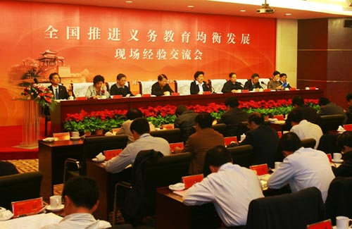 11月6日至7日,全國(guó)推進(jìn)義務(wù)教育均衡發(fā)展現(xiàn)場(chǎng)經(jīng)驗(yàn)交流會(huì)在河北省邯鄲市召開(kāi)。中共中央政治局委員、國(guó)務(wù)委員劉延?xùn)|出席會(huì)議并作重要講話。她強(qiáng)調(diào),要深入貫徹科學(xué)發(fā)展觀,堅(jiān)持以人為本,采取有效措施,大力推進(jìn)義務(wù)教育均衡發(fā)展,讓更多學(xué)生享受高質(zhì)量教育,讓廣大人民群眾共享教育改革發(fā)展成果。 劉延?xùn)|指出,推進(jìn)義務(wù)教育均衡發(fā)展是社會(huì)主義制度的本質(zhì)要求和黨執(zhí)政為民理念的體現(xiàn),是貫徹落實(shí)《義務(wù)教育法》、促進(jìn)教育公平的必然要求,是辦好人民滿意教育的現(xiàn)實(shí)需要,是實(shí)施素質(zhì)教育的重要保證。要以內(nèi)涵發(fā)展為導(dǎo)向,推進(jìn)素質(zhì)教育,推動(dòng)教學(xué)內(nèi)容和方法改革,減輕學(xué)生課業(yè)負(fù)擔(dān),增強(qiáng)學(xué)生身體素質(zhì),全面提高義務(wù)教育質(zhì)量。要加大對(duì)農(nóng)村、貧困地區(qū)、老區(qū)、邊疆民族地區(qū)的支持力度,提高農(nóng)村義務(wù)教育發(fā)展水平,保障困難群體平等接受義務(wù)教育,不斷縮小區(qū)域、城鄉(xiāng)發(fā)展差距。要推動(dòng)區(qū)域內(nèi)教育資源合理配置,建設(shè)高素質(zhì)教師隊(duì)伍,促進(jìn)優(yōu)質(zhì)資源共享,努力辦好每一所學(xué)校。要推進(jìn)體制機(jī)制創(chuàng)新,完善質(zhì)量評(píng)價(jià)體系和督導(dǎo)制度,形成促進(jìn)義務(wù)教育均衡發(fā)展的長(zhǎng)效機(jī)制。 劉延?xùn)|強(qiáng)調(diào),各級(jí)政府要高度重視,采取措施,把推進(jìn)義務(wù)教育均衡發(fā)展作為公共服務(wù)的重要職責(zé),作為重大民生工程,切實(shí)抓緊抓好。要加大投入,完善經(jīng)費(fèi)保障機(jī)制。要加強(qiáng)指導(dǎo)、監(jiān)督和檢查,促進(jìn)學(xué)校教學(xué)質(zhì)量、管理水平、特色文化和校風(fēng)學(xué)風(fēng)建設(shè)實(shí)現(xiàn)新提高。要大力宣傳義務(wù)教育均衡發(fā)展的政策措施和先進(jìn)典型,營(yíng)造良好社會(huì)輿論氛圍。 教育部部長(zhǎng)袁貴仁出席會(huì)議并講話。他要求,各地要認(rèn)真學(xué)習(xí)、深刻領(lǐng)會(huì)中共中央政治局委員、國(guó)務(wù)委員劉延?xùn)|在此次會(huì)議上的重要講話精神,把義務(wù)教育作為教育改革與發(fā)展的重中之重,把均衡發(fā)展作為義務(wù)教育的重中之重,把義務(wù)教育均衡發(fā)展作為國(guó)家推動(dòng)教育發(fā)展的奠基工程和貫徹落實(shí)《義務(wù)教育法》的重要工程,進(jìn)一步完善政策措施,加大工作力度,切實(shí)抓緊抓好抓出成效。他強(qiáng)調(diào),要以科學(xué)發(fā)展觀為指導(dǎo),突出抓好義務(wù)教育均衡發(fā)展的重點(diǎn)環(huán)節(jié)。一是明確職責(zé)任務(wù),把推進(jìn)義務(wù)教育均衡發(fā)展納入經(jīng)濟(jì)社會(huì)發(fā)展規(guī)劃。以縣域內(nèi)實(shí)現(xiàn)均衡為工作重點(diǎn),大力推進(jìn)縣域內(nèi)義務(wù)教育均衡發(fā)展。二是加強(qiáng)隊(duì)伍建設(shè),均衡配置校長(zhǎng)和教師資源。通過(guò)體制機(jī)制創(chuàng)新,加大義務(wù)教育階段校長(zhǎng)和教師的培訓(xùn)、交流力度。三是提高教育質(zhì)量,促進(jìn)廣大學(xué)生德智體美全面發(fā)展。更加關(guān)注義務(wù)教育的內(nèi)涵發(fā)展,在制定政策、配置資源、安排資金時(shí)優(yōu)先保障提高教育教學(xué)質(zhì)量的需要。四是完善政策措施,保障全體學(xué)生平等接受義務(wù)教育。完善對(duì)家庭經(jīng)濟(jì)困難學(xué)生的資助體系,落實(shí)保障進(jìn)城務(wù)工人員隨遷子女接受義務(wù)教育的政策措施,建立農(nóng)村留守兒童關(guān)愛(ài)服務(wù)體系,加大對(duì)少數(shù)民族地區(qū)義務(wù)教育的支持,將殘疾兒童少年義務(wù)教育全面納入公共財(cái)政保障范圍。五是強(qiáng)化督導(dǎo)評(píng)估,建立義務(wù)教育均衡發(fā)展激勵(lì)機(jī)制。 河北省長(zhǎng)胡春華在會(huì)上致辭,他表示,河北省委、省政府始終把教育擺在優(yōu)先發(fā)展的戰(zhàn)略地位,立足河北實(shí)際制定了一系列政策措施,全省各級(jí)各類教育實(shí)現(xiàn)了長(zhǎng)足發(fā)展。特別是堅(jiān)持把推進(jìn)義務(wù)教育均衡發(fā)展作為落實(shí)科學(xué)發(fā)展觀的重要舉措,作為促進(jìn)社會(huì)公平和諧的重要內(nèi)容,積極探索義務(wù)教育均衡發(fā)展的新路子。我們將以此次現(xiàn)場(chǎng)會(huì)在河北召開(kāi)為契機(jī),認(rèn)真學(xué)習(xí)兄弟省市的先進(jìn)經(jīng)驗(yàn),努力改進(jìn)工作,推動(dòng)我省教育工作邁上新的臺(tái)階。 副省長(zhǎng)龍莊偉在會(huì)上介紹了河北省推進(jìn)義務(wù)教育均衡發(fā)展的經(jīng)驗(yàn)。近年來(lái),河北省堅(jiān)持政府統(tǒng)籌,不斷強(qiáng)化政府行為,為推進(jìn)義務(wù)教育均衡發(fā)展提供保障,2005年,省委、省政府做出《關(guān)于加強(qiáng)教育工作的決定》,制定了推進(jìn)義務(wù)教育均衡發(fā)展相關(guān)政策措施;2007年,省政府部署了以學(xué)區(qū)建設(shè)改革促進(jìn)農(nóng)村義務(wù)教育均衡發(fā)展工作;2008年,省政府又制定了