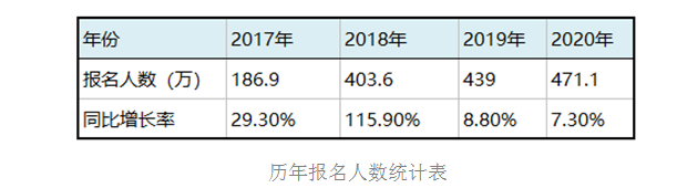 近年來,隨著會計從業(yè)資格證書的取消,初級會計職稱考試作為財會行業(yè)的門檻級證書,報名人數(shù)呈井噴式增長。2020年報名人數(shù)高達(dá)471.1萬,如人數(shù)持續(xù)增長,2021年的報名人數(shù)有望突破500萬。毫無疑問,初級會計職稱已經(jīng)成為最受人關(guān)注的職業(yè)類證書之一。