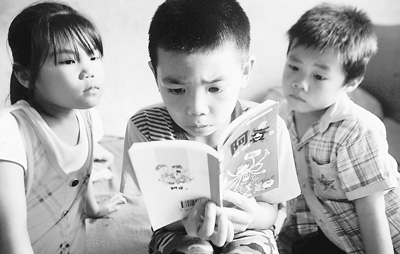 廣西壯族自治區(qū)一個“留守兒童之家”,孩子們在看同一本漫畫書。
