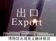 ---------------------------------------------------------------- 文化重地出現(xiàn)錯別字,也不僅故宮一個。日前,國內(nèi)一家博物館被曝通道“出口”的英語標志,被錯誤地翻譯成“export”,這個單詞中文意思雖然也是“出口”,但指的是國際貿(mào)易的出口。正確翻譯應(yīng)為“exit”。