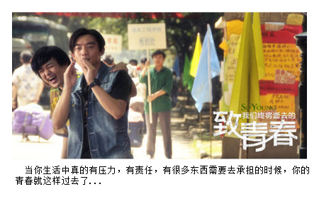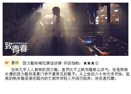 正如故鄉(xiāng)是用來懷念的,青春是用來追憶的,當(dāng)你懷揣著它的時(shí)候,它可能一文不值,只有它全部耗盡的時(shí)候,再回過頭看,一切都有了意義,每個(gè)人或多或少都能在《致青春》的電影里找到自己當(dāng)年的影子,也許會(huì)因?yàn)橐痪湓,一個(gè)場(chǎng)景,觸發(fā)那些在我們心底不曾看見的東西, 我們的青春年華正如這一幕幕的電影畫面,慢慢清晰,慢慢模糊。