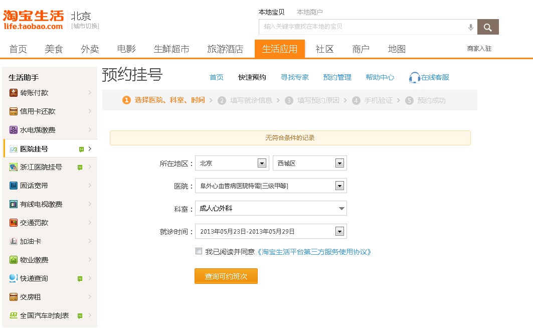 由上圖我們可以發(fā)現(xiàn),通過淘寶掛號似乎變得簡單了,在淘寶上找到想要預(yù)約的醫(yī)院和科室之后只需完成“填寫就診信息”,“填寫就診原因”以及“通過手機(jī)驗(yàn)證”這幾步便可實(shí)現(xiàn)足不出戶掛號,不必再早起排隊(duì),也不必再擔(dān)心黃牛搶號,這幸福好像來得有點(diǎn)太過突然。 但其實(shí)仔細(xì)看起來一切似乎并沒有那么美好。 當(dāng)我們找到心儀的醫(yī)院和科室點(diǎn)擊查詢可約班次時卻常常會出現(xiàn)下圖的情況。是恰巧沒有符合條件的班次嗎?小編又換了幾家醫(yī)院的幾個科室情況依舊如此。 |