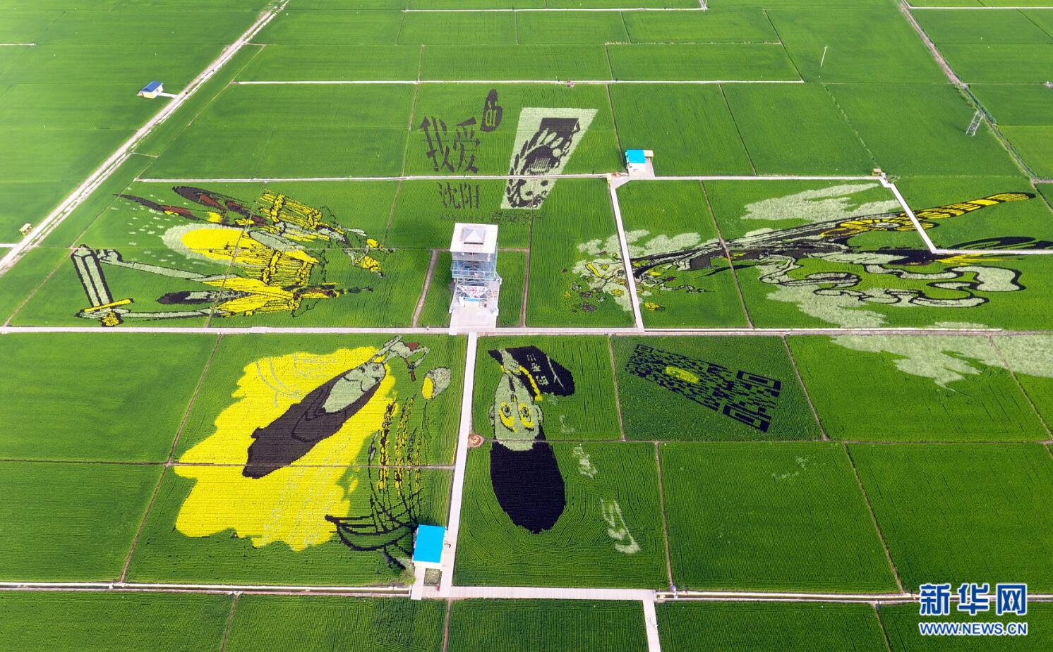 圖為稻田畫《聞雞起舞》。新華網(wǎng) 姜冰攝 -