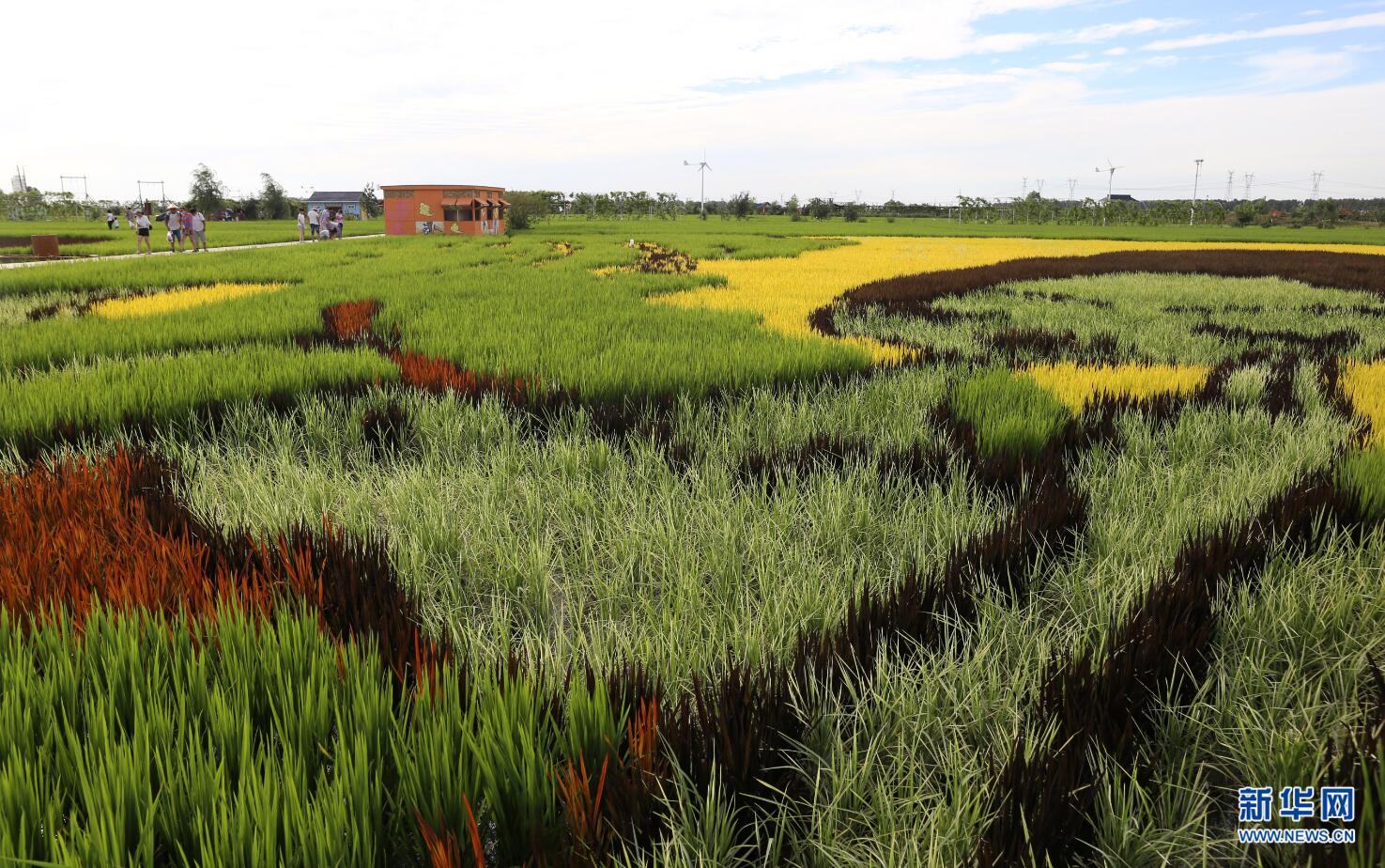 7月24日在沈陽市興隆臺錫伯族鎮(zhèn)稻夢空間園內(nèi)拍攝的稻田畫《美容大米》。 新華網(wǎng) 姜冰攝 -